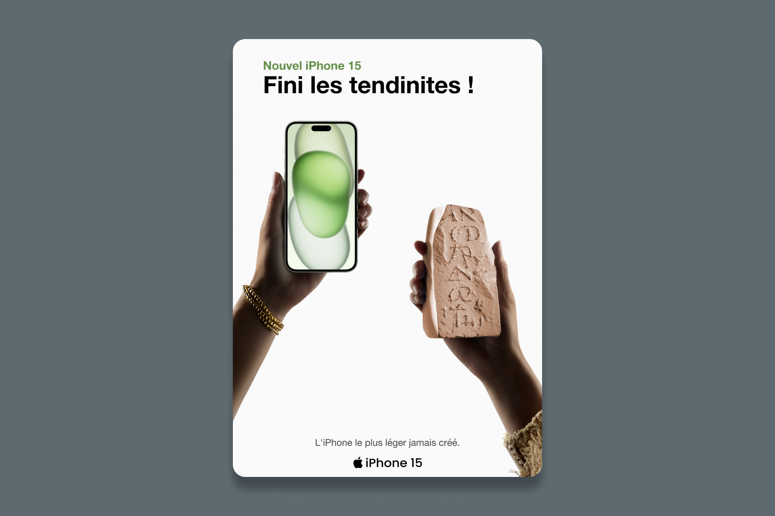 J'ai conçu une campagne publicitaire décalée pour Apple, rompant avec son style habituel. Deux affiches humoristiques, dont l'une un peu provocatrice, mettent en avant l'élégance de la marque tout en apportant une touche d'humour. Cette approche audacieuse vise à susciter l'intérêt et à engager le spectateur d'une manière nouvelle et inattendue. En défiant les attentes tout en préservant l'image de marque bien établie, cette campagne explore de nouveaux horizons créatifs tout en restant fidèle à l'essence même d'Apple.
